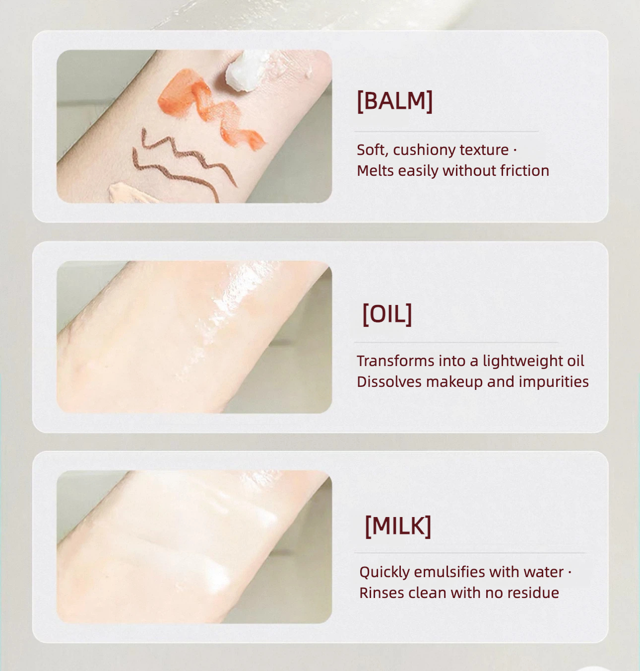 Gently massage until the balm melts into an oil.
