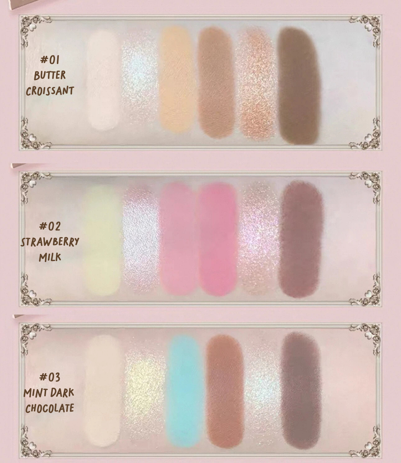 #01 Butter Croissant, #02 Strawberry Milk, #03 Mint Dark Chocolate